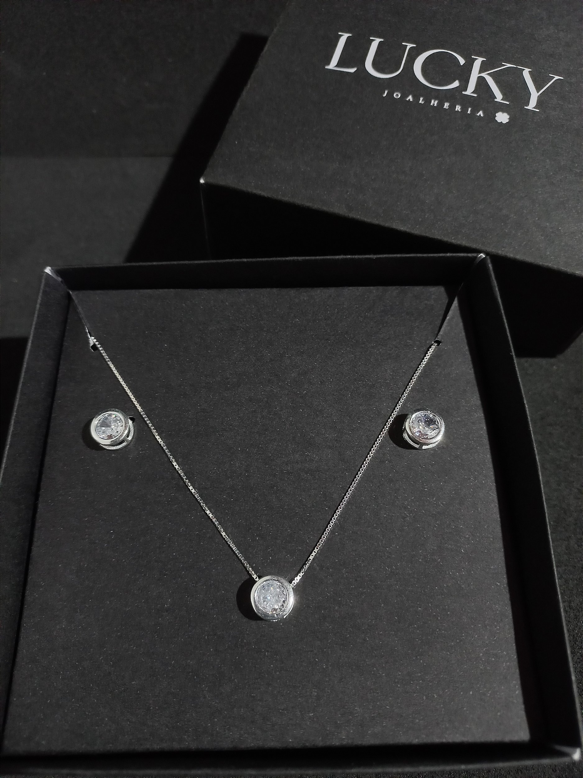 Comprimento: Colar 45 cm e Brinco 9 mmPedra: Zircônia